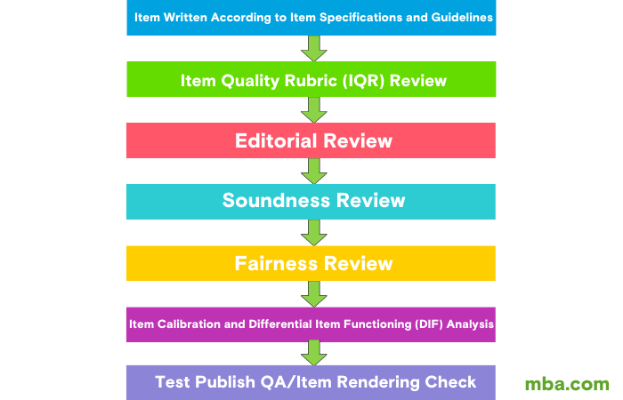 As the developer of the GMAT exam, the Graduate Management Admission Council™ (GMAC™) takes the exam’s role as a standardized metric for the admissions decision-making process deeply to heart. GMAC takes seriously its mission to ensure the quality and fairness of the GMAT exam for all test takers across the globe. It does so by subjecting every potential test question (a.k.a. “item”) to a rigorous seven-step development and review process before it can be used in operational exams.
